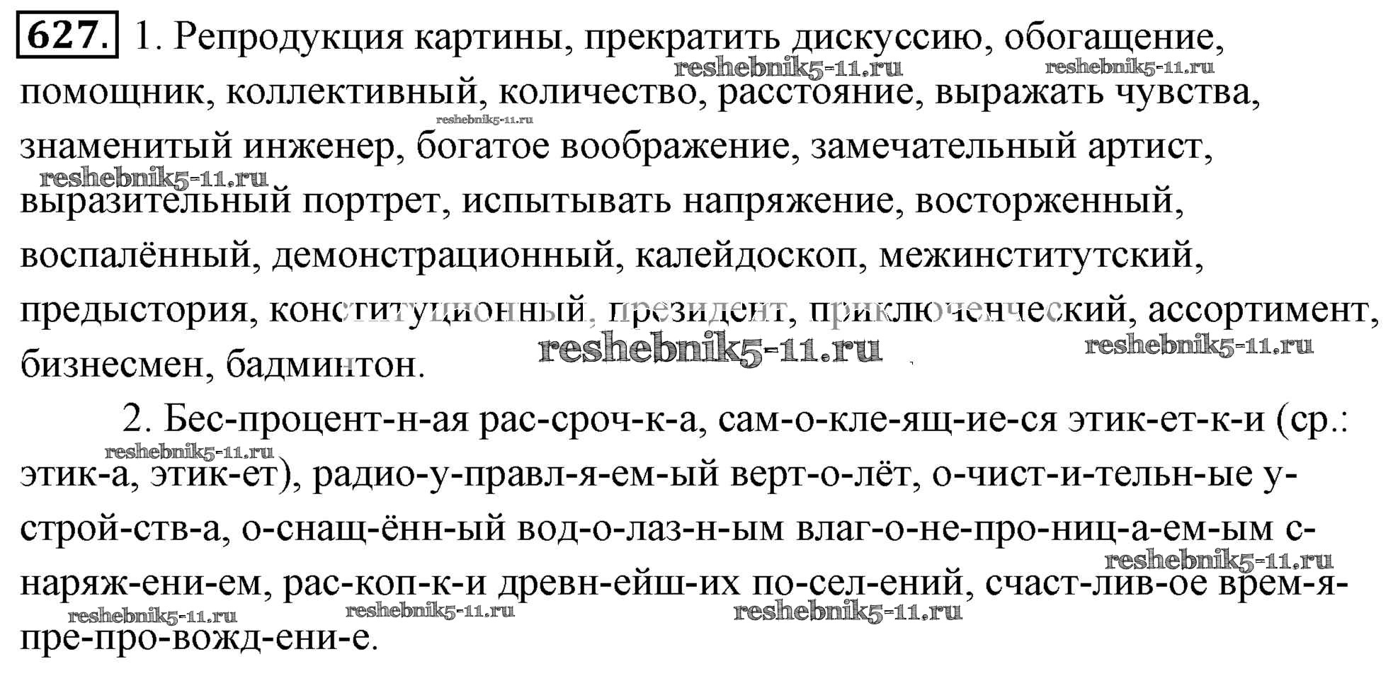Русский язык за 6 класс Львова Учебник Мнемозина упражнение 627