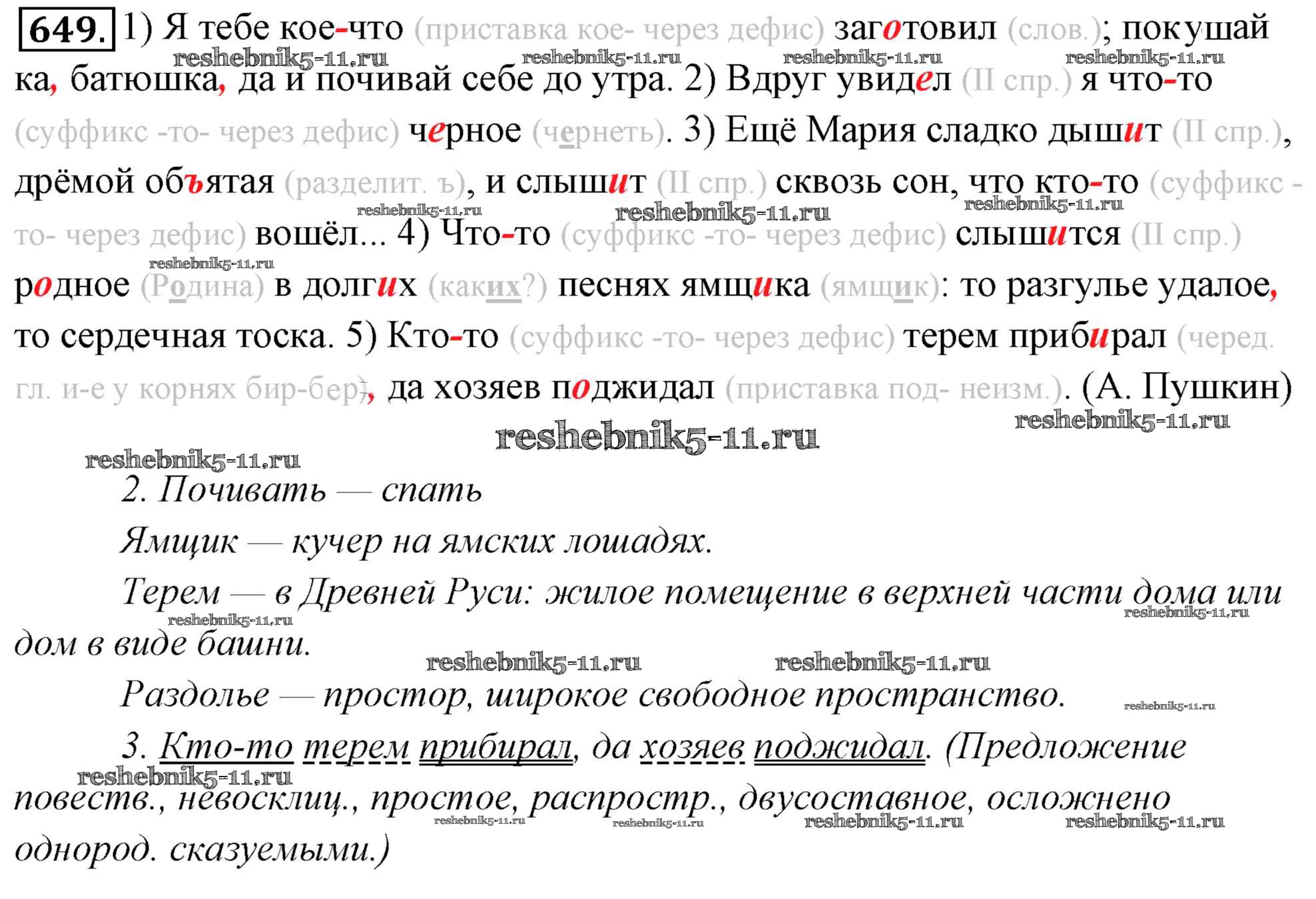 Готовая домашняя работа с ответами по Русскому языку за 6 класс Львова, Львов Учебник Часть 1, 2 Мнемозина 2013 ФГОС - Упражнения 649
