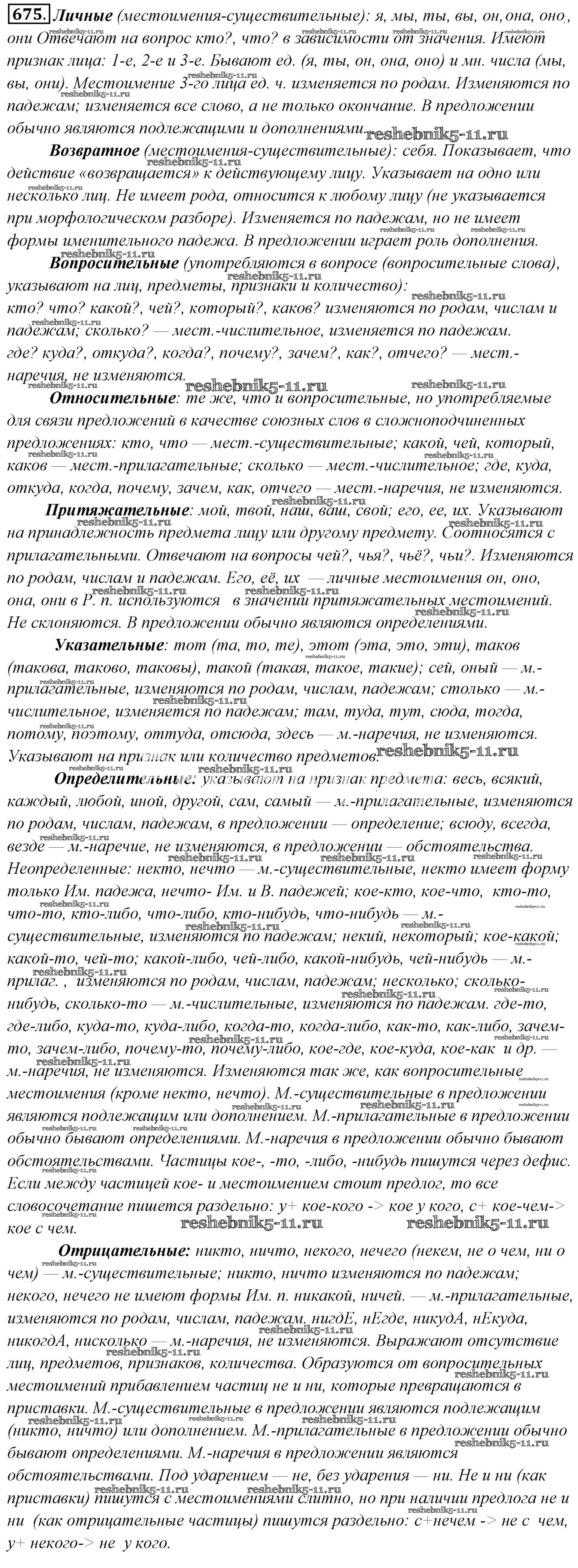 Готовая домашняя работа с ответами по Русскому языку за 6 класс Львова, Львов Учебник Часть 1, 2 Мнемозина 2013 ФГОС - Упражнения 675