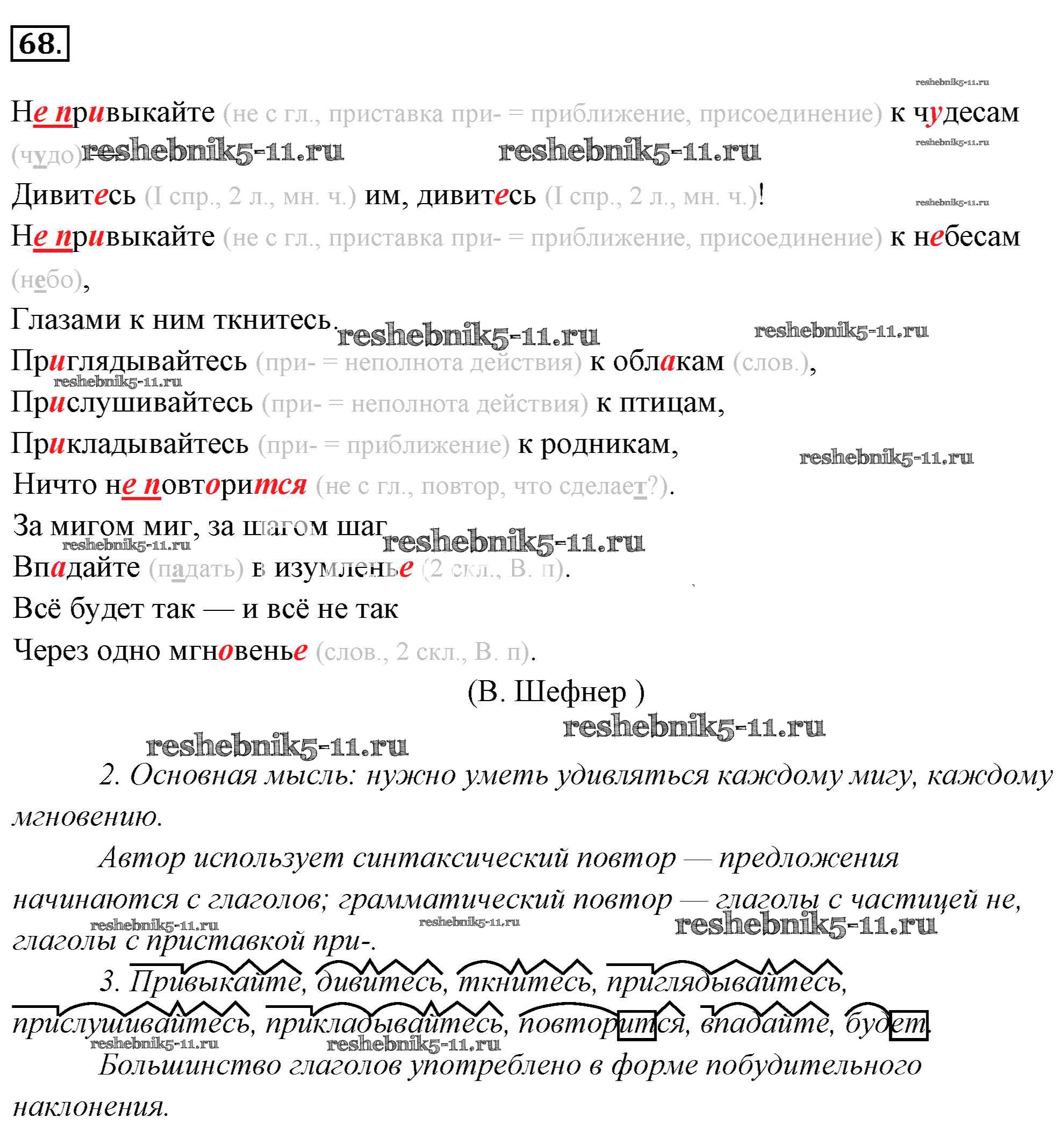 Готовая домашняя работа с ответами по Русскому языку за 6 класс Львова, Львов Учебник Часть 1, 2 Мнемозина 2013 ФГОС - Упражнения 68