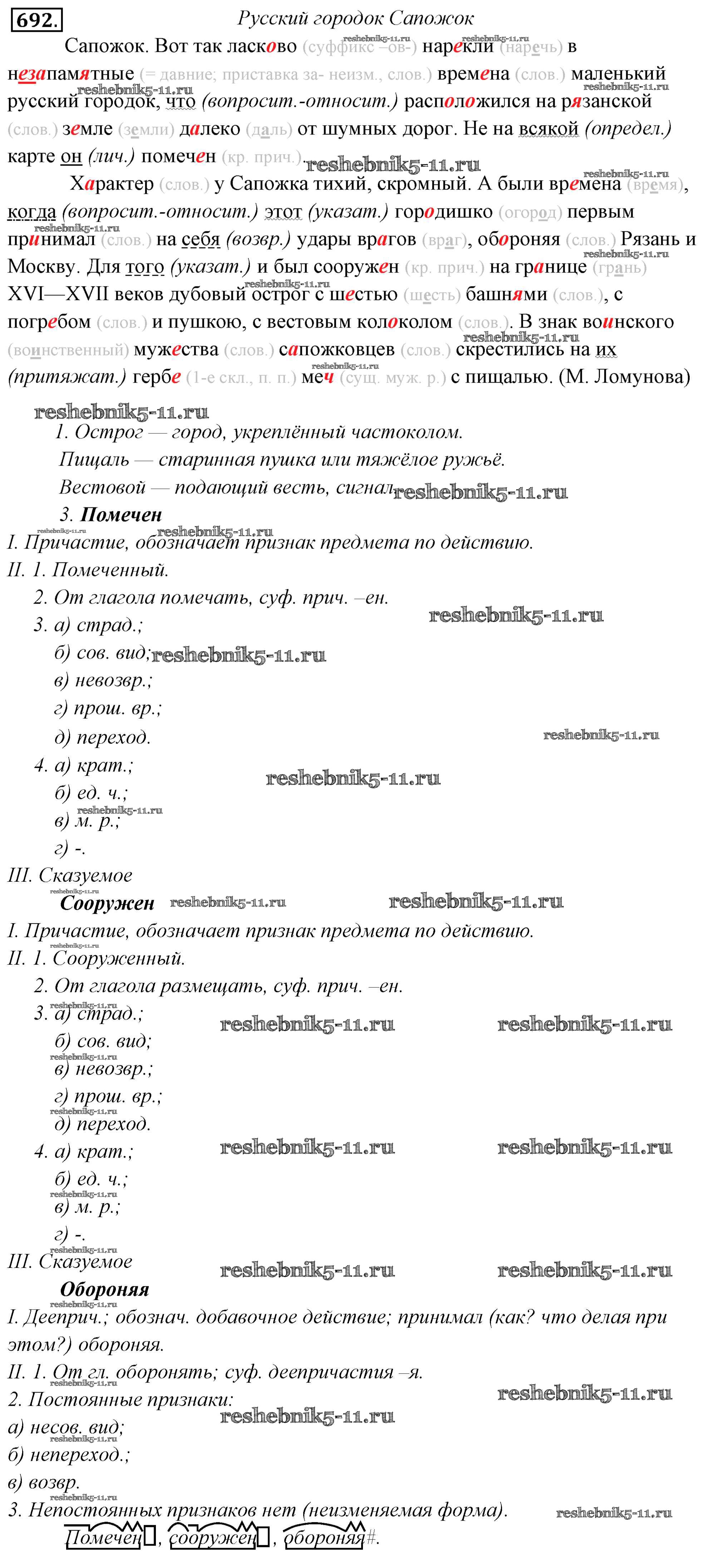 Готовая домашняя работа с ответами по Русскому языку за 6 класс Львова, Львов Учебник Часть 1, 2 Мнемозина 2013 ФГОС - Упражнения 692