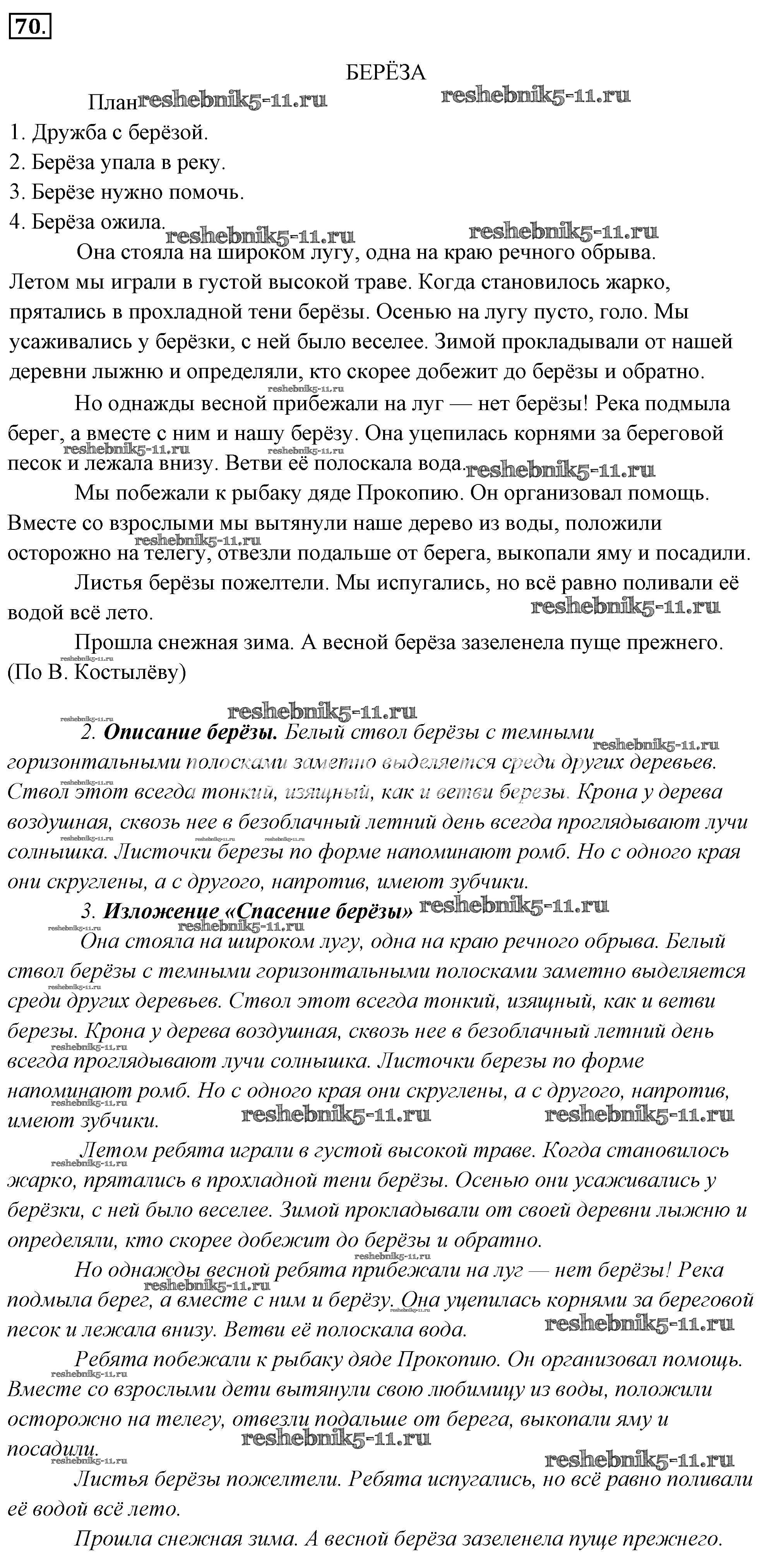 Готовая домашняя работа с ответами по Русскому языку за 6 класс Львова, Львов Учебник Часть 1, 2 Мнемозина 2013 ФГОС - Упражнения 70