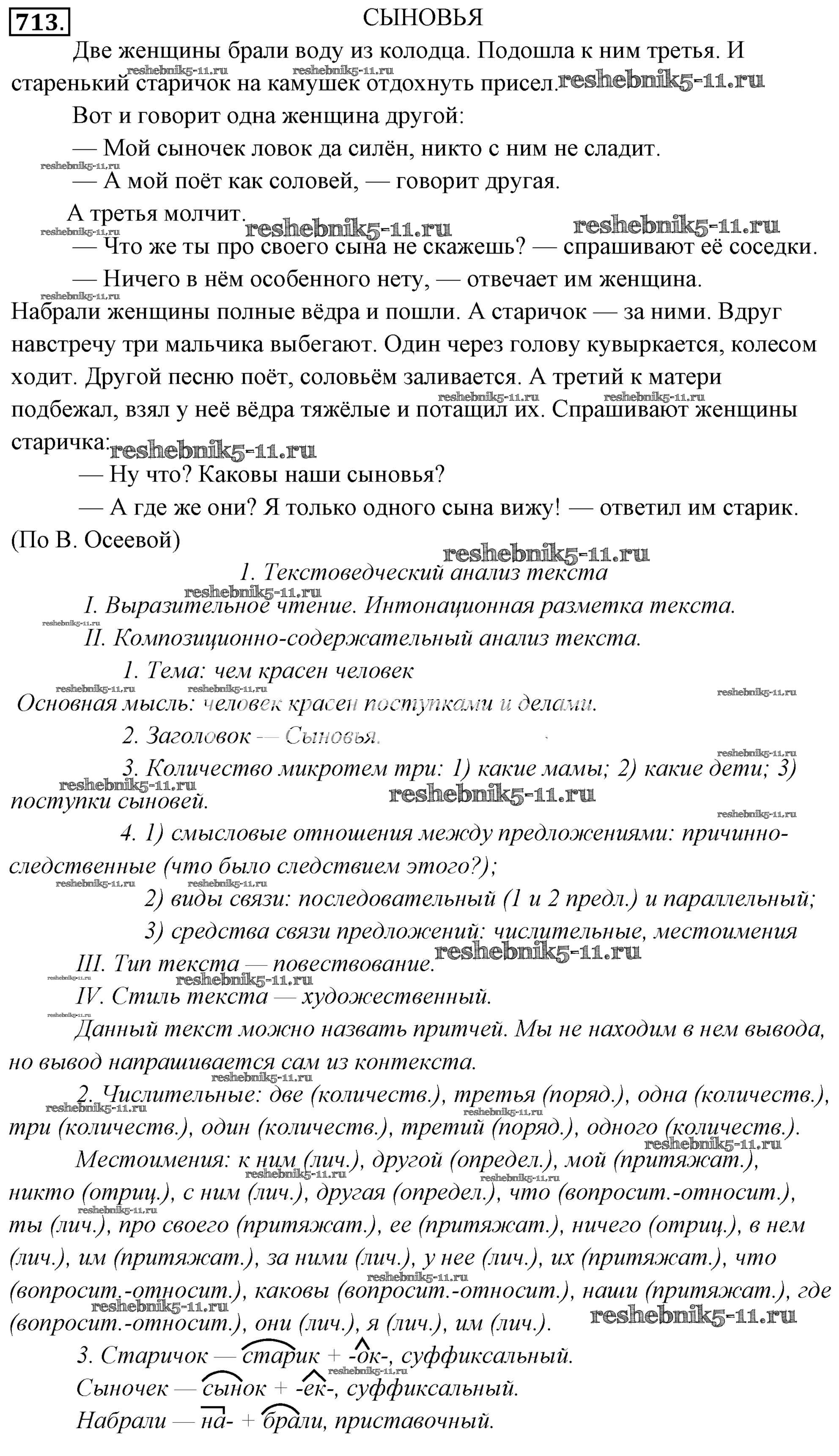 Русский язык за 6 класс Львова Учебник Мнемозина упражнение 713
