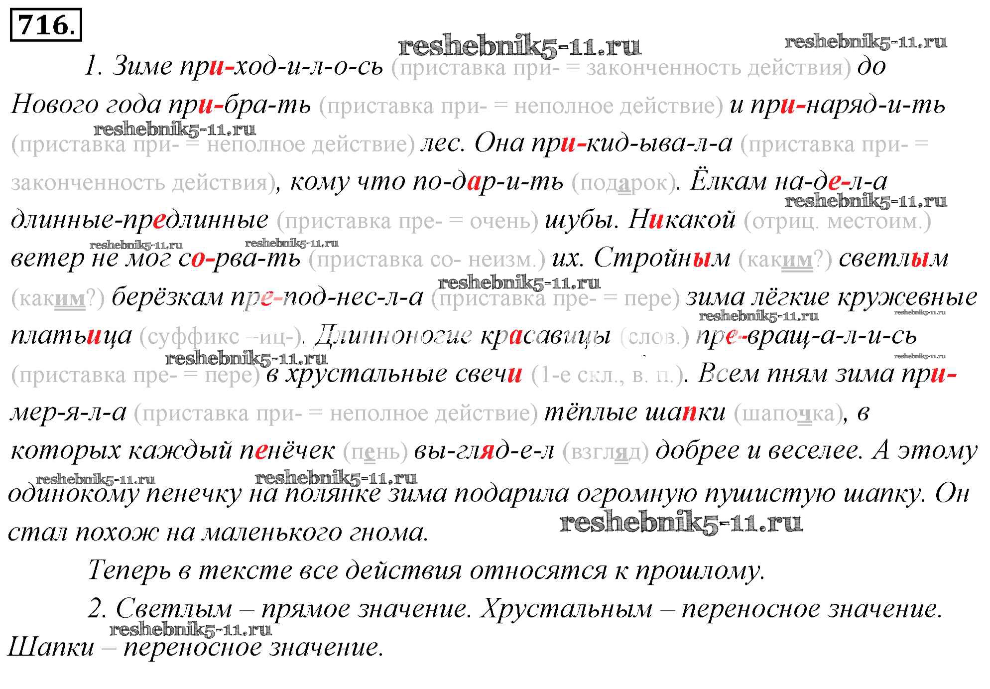Готовая домашняя работа с ответами по Русскому языку за 6 класс Львова, Львов Учебник Часть 1, 2 Мнемозина 2013 ФГОС - Упражнения 716