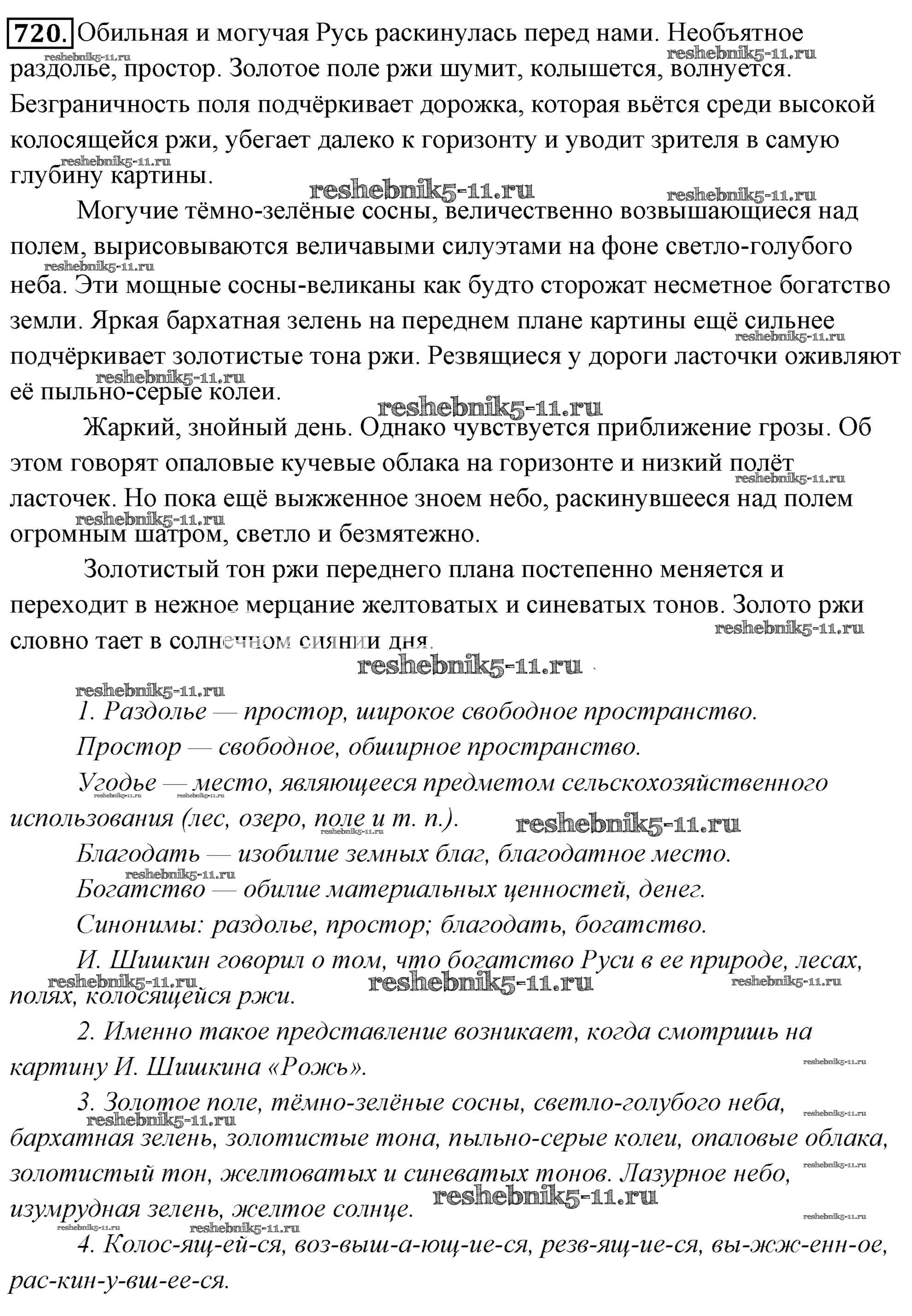 Русский язык за 6 класс Львова Учебник Мнемозина упражнение 720