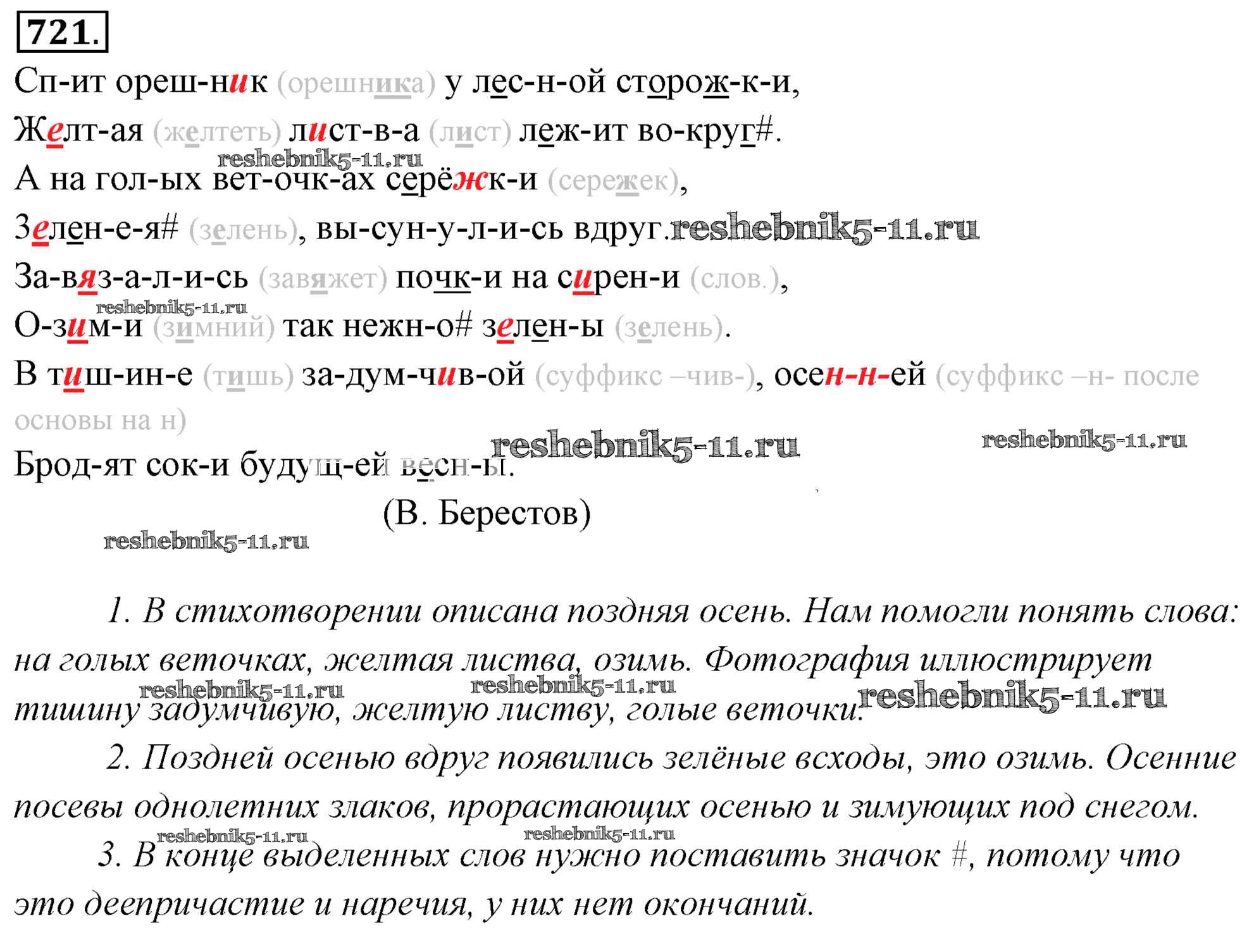 Готовая домашняя работа с ответами по Русскому языку за 6 класс Львова, Львов Учебник Часть 1, 2 Мнемозина 2013 ФГОС - Упражнения 721