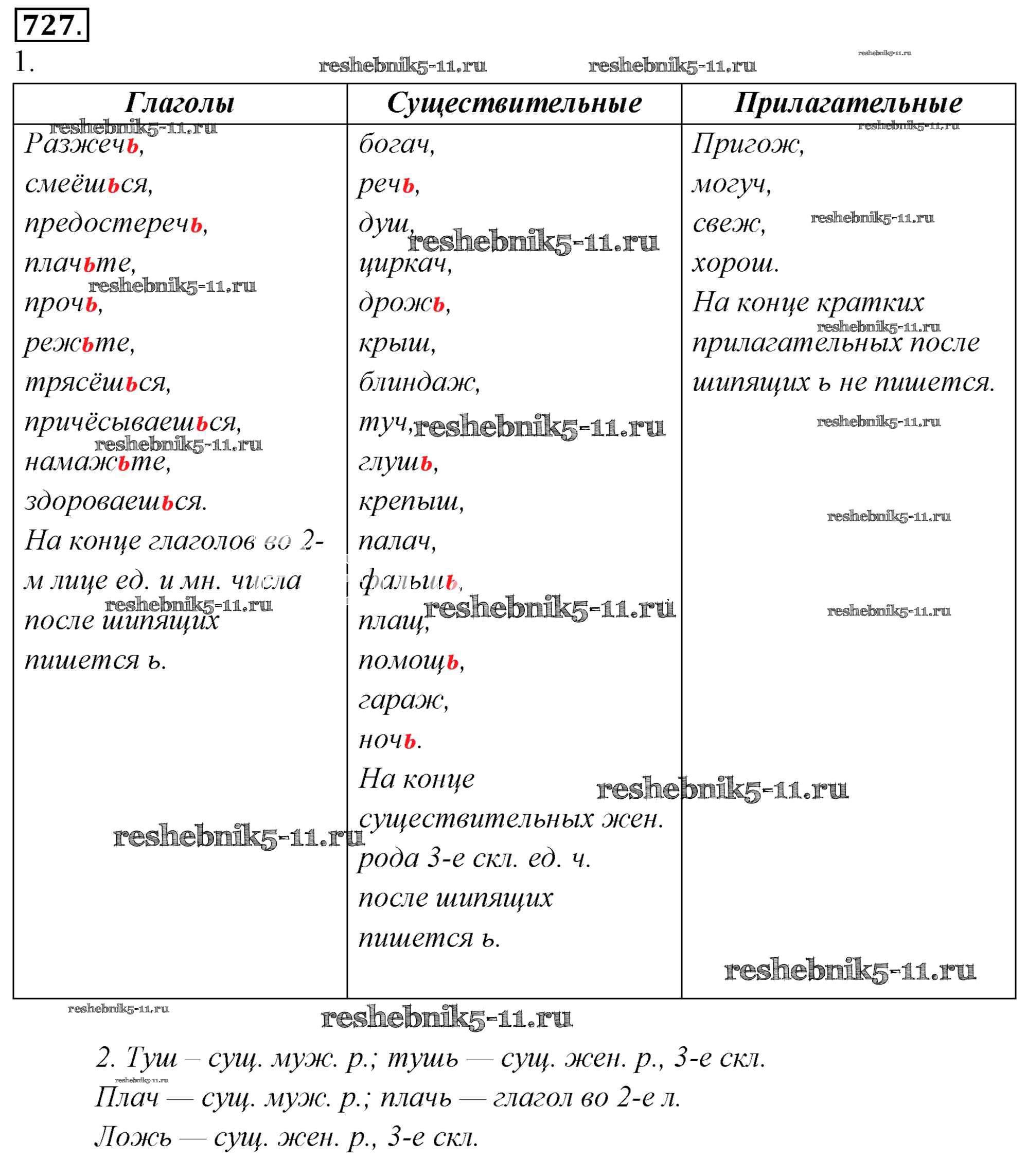 Готовая домашняя работа с ответами по Русскому языку за 6 класс Львова, Львов Учебник Часть 1, 2 Мнемозина 2013 ФГОС - Упражнения 727