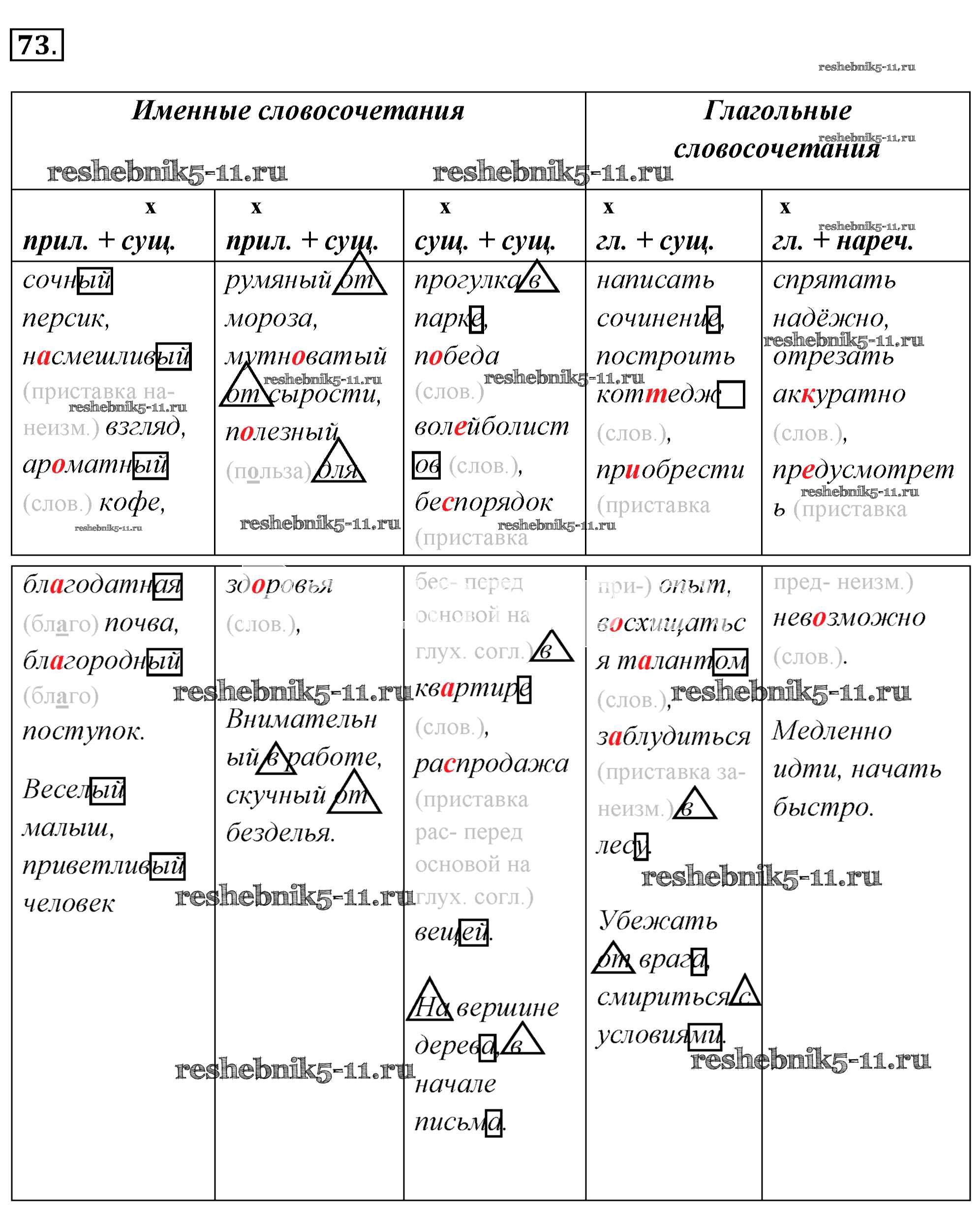 Готовая домашняя работа с ответами по Русскому языку за 6 класс Львова, Львов Учебник Часть 1, 2 Мнемозина 2013 ФГОС - Упражнения 73
