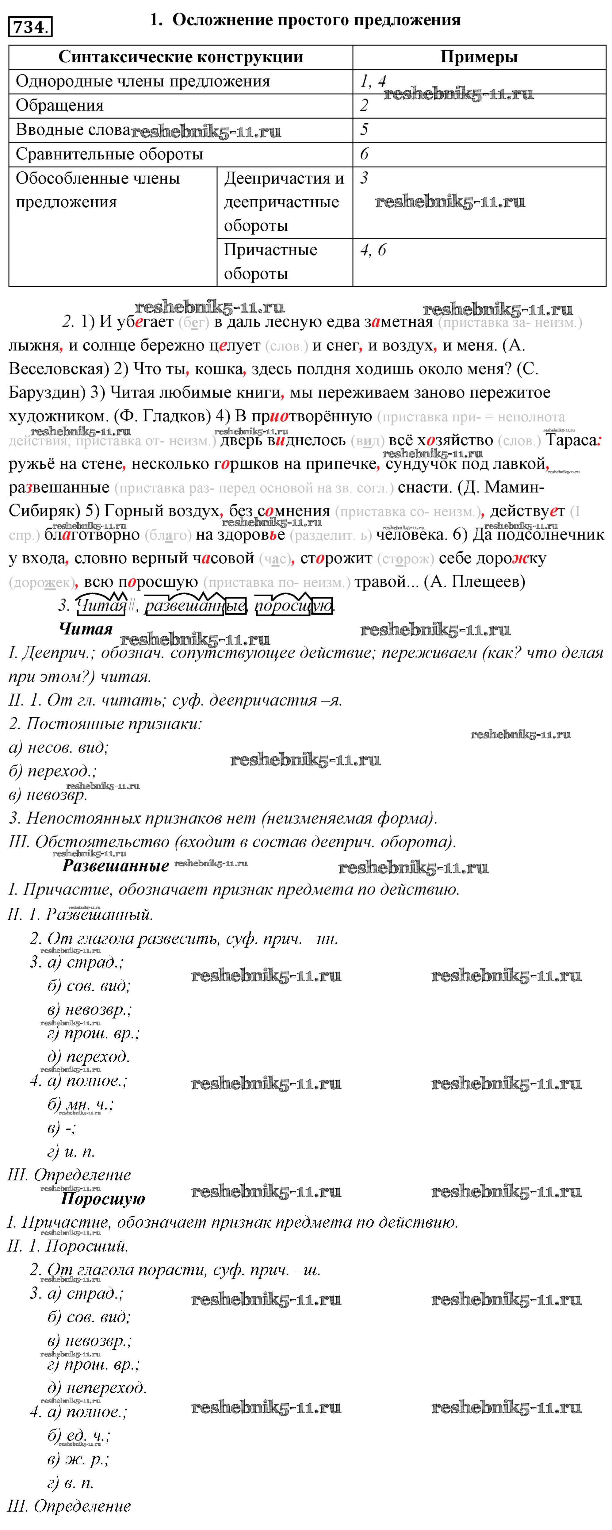 Готовая домашняя работа с ответами по Русскому языку за 6 класс Львова, Львов Учебник Часть 1, 2 Мнемозина 2013 ФГОС - Упражнения 734
