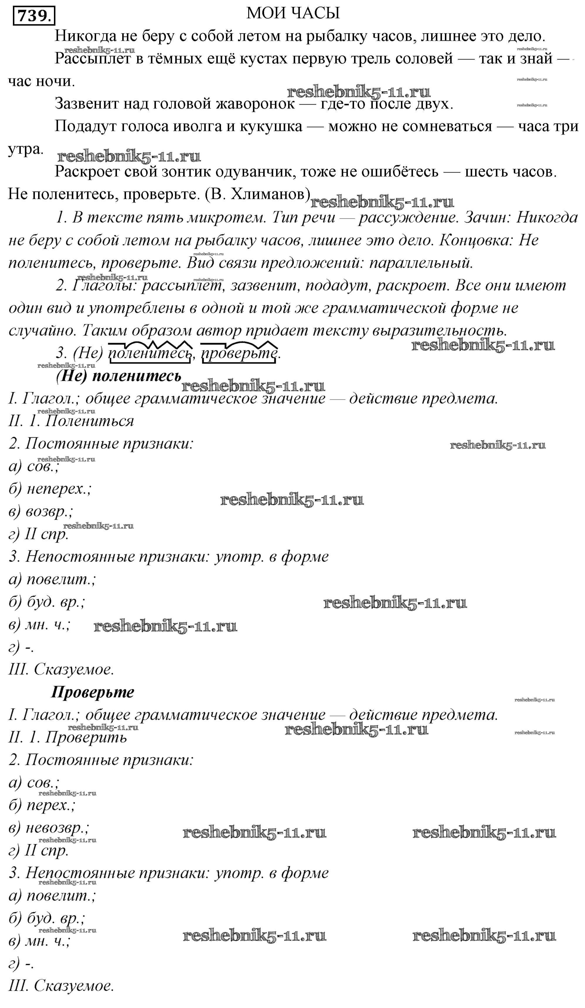 Готовая домашняя работа с ответами по Русскому языку за 6 класс Львова, Львов Учебник Часть 1, 2 Мнемозина 2013 ФГОС - Упражнения 739