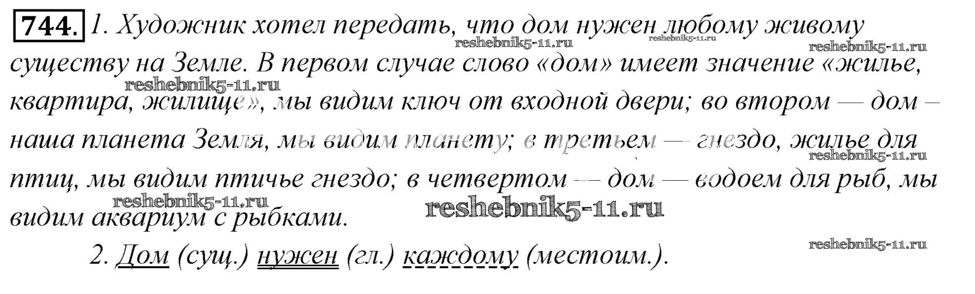 Готовая домашняя работа с ответами по Русскому языку за 6 класс Львова, Львов Учебник Часть 1, 2 Мнемозина 2013 ФГОС - Упражнения 744