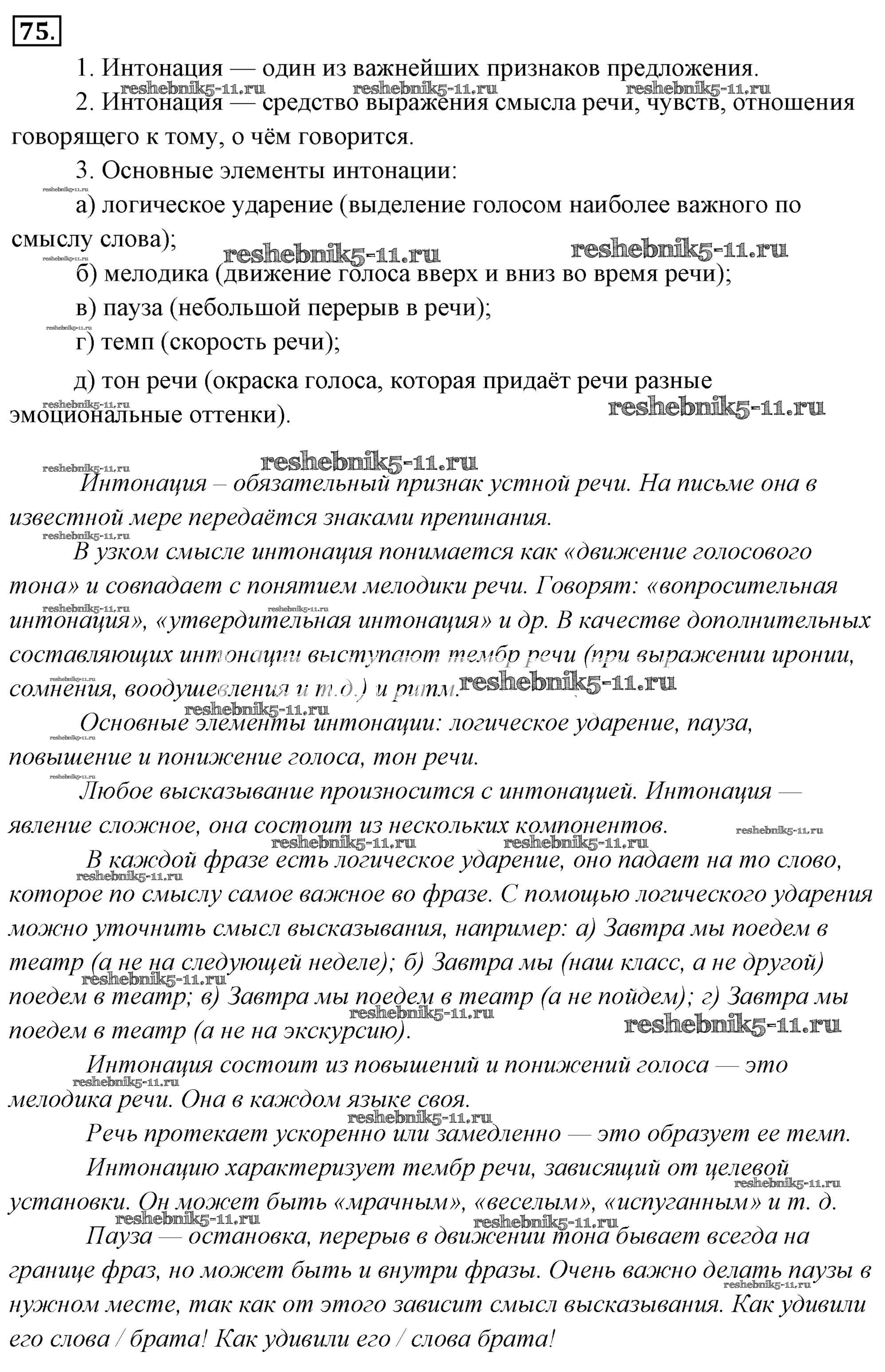 Готовая домашняя работа с ответами по Русскому языку за 6 класс Львова, Львов Учебник Часть 1, 2 Мнемозина 2013 ФГОС - Упражнения 75