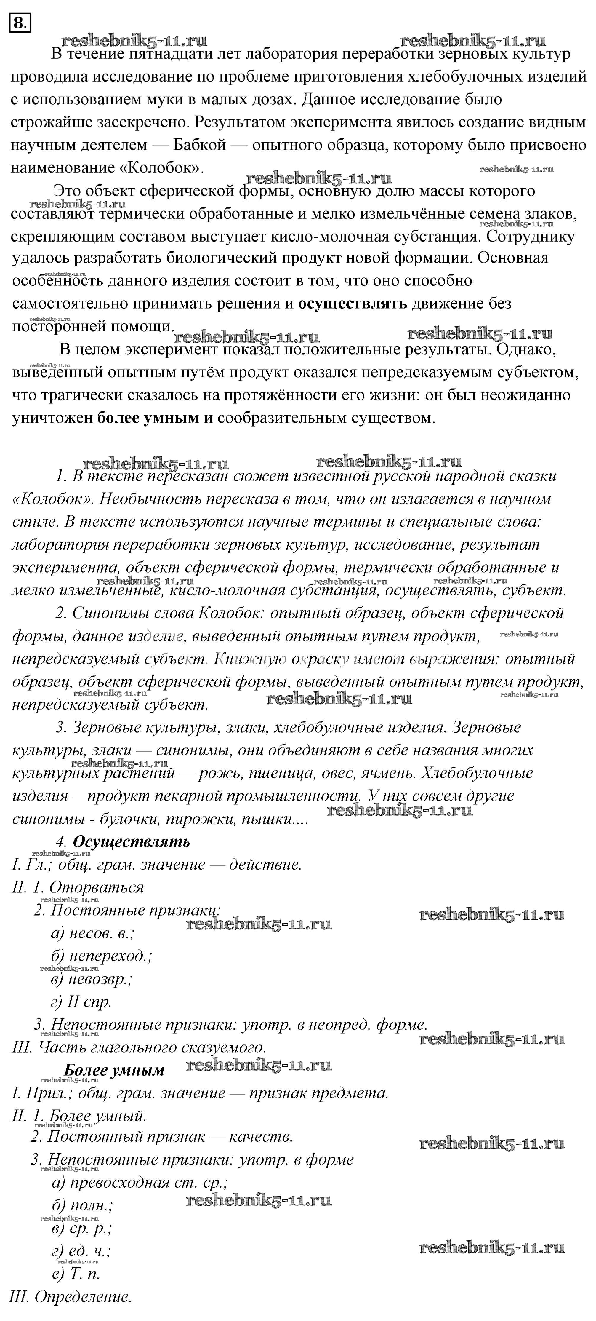 Готовая домашняя работа с ответами по Русскому языку за 6 класс Львова, Львов Учебник Часть 1, 2 Мнемозина 2013 ФГОС - Упражнения 8