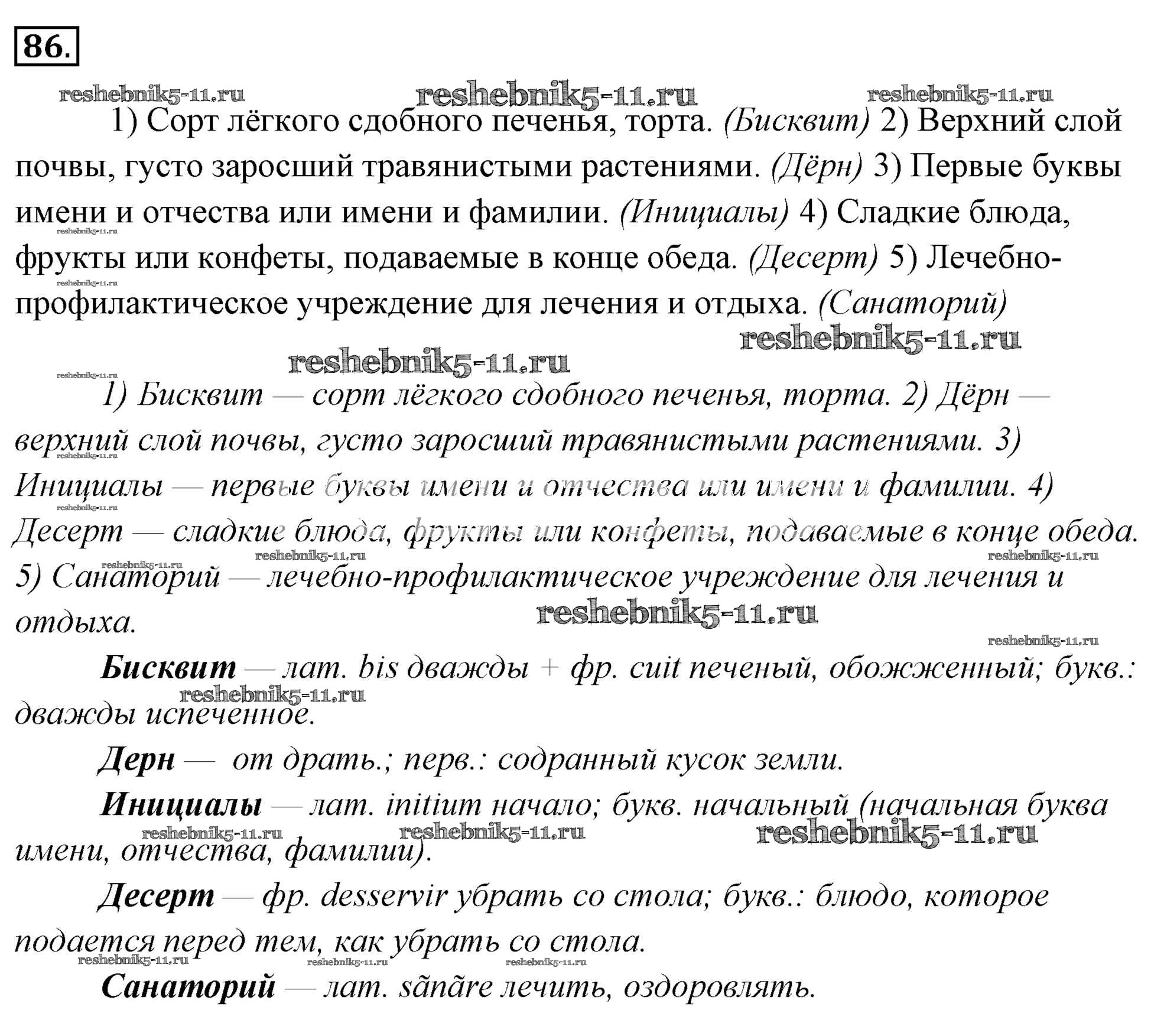 Готовая домашняя работа с ответами по Русскому языку за 6 класс Львова, Львов Учебник Часть 1, 2 Мнемозина 2013 ФГОС - Упражнения 86
