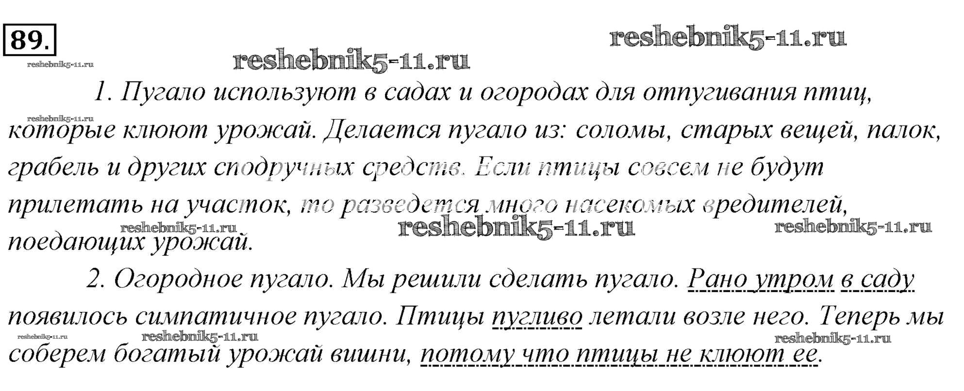 Готовая домашняя работа с ответами по Русскому языку за 6 класс Львова, Львов Учебник Часть 1, 2 Мнемозина 2013 ФГОС - Упражнения 89