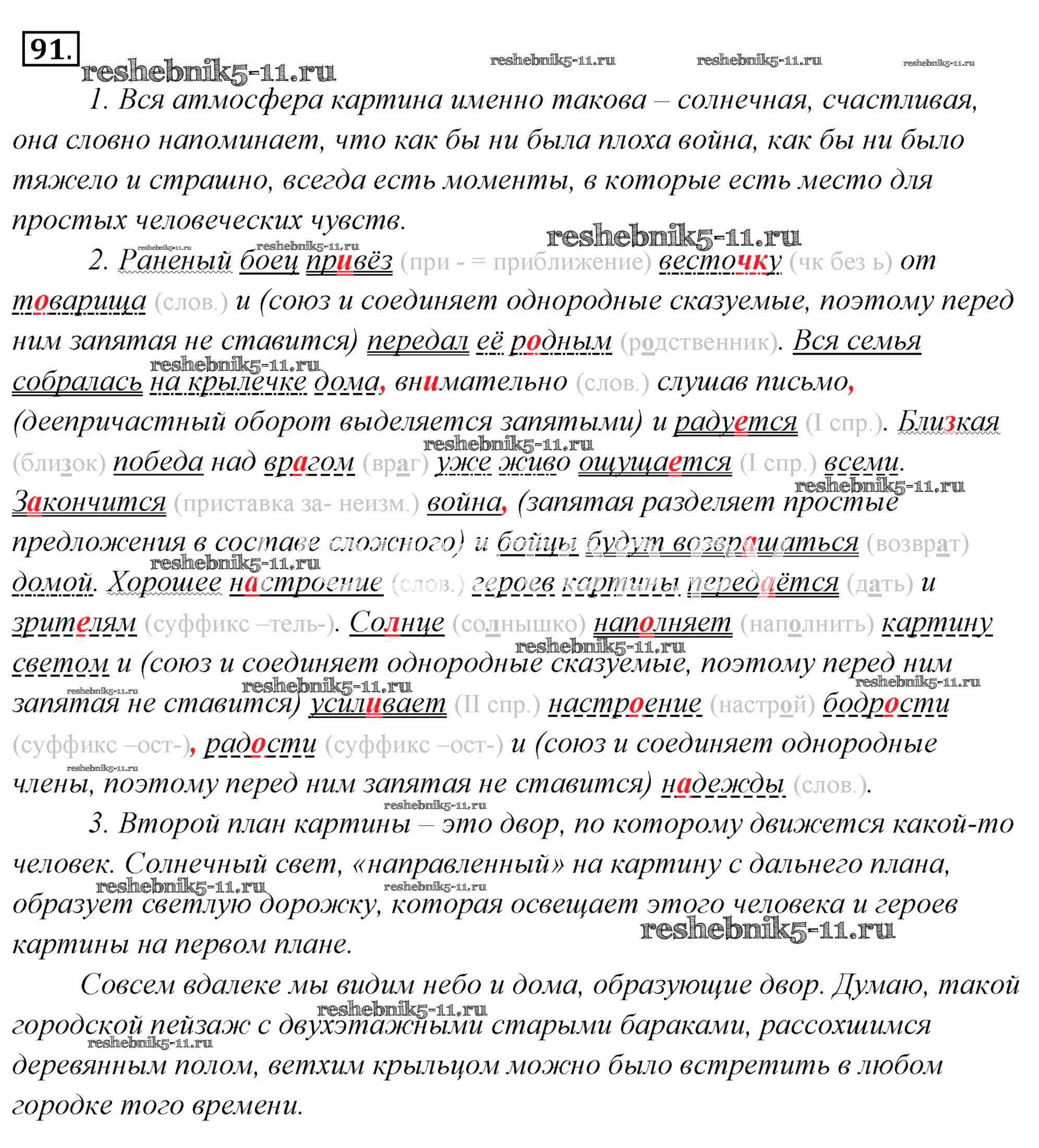 Готовая домашняя работа с ответами по Русскому языку за 6 класс Львова, Львов Учебник Часть 1, 2 Мнемозина 2013 ФГОС - Упражнения 91