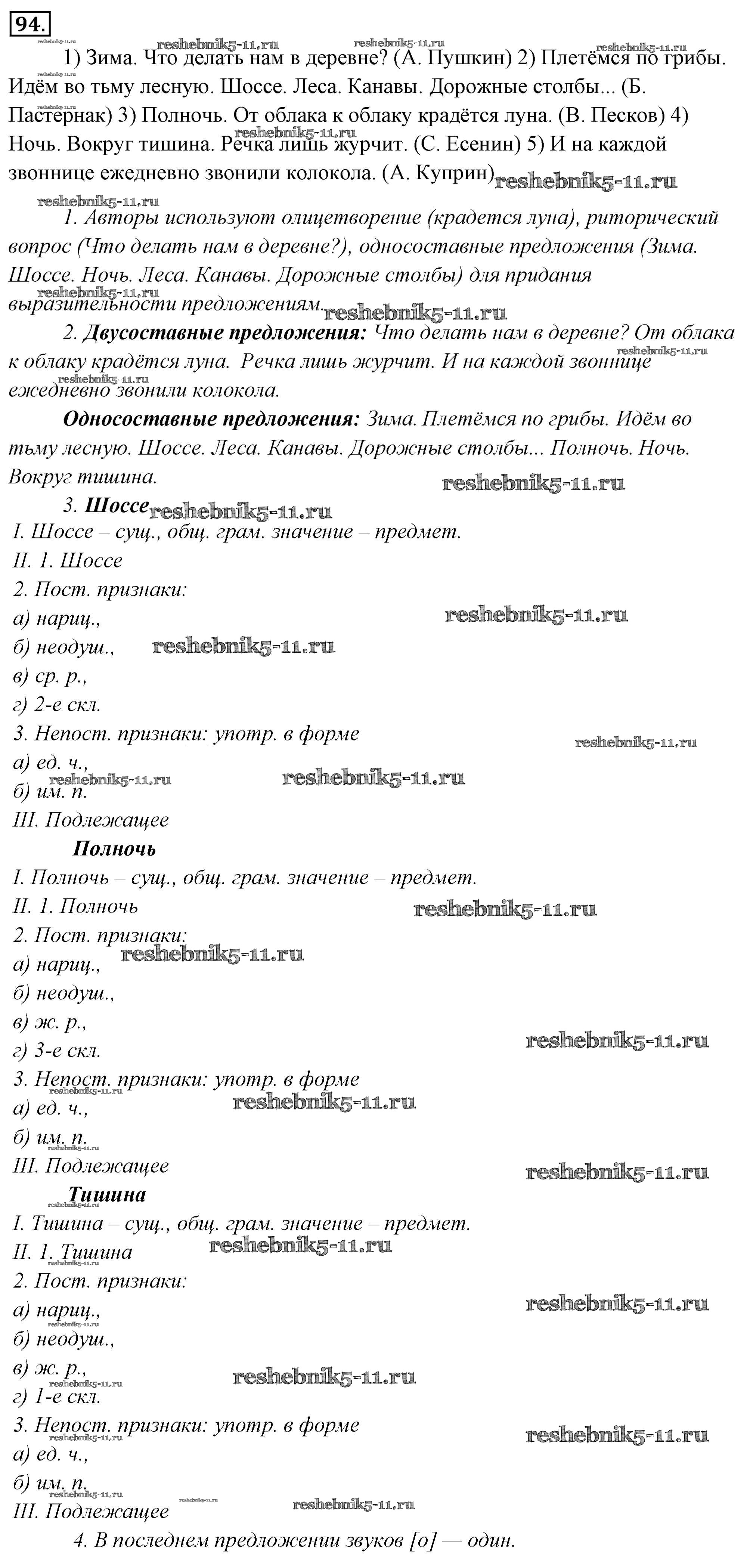 Готовая домашняя работа с ответами по Русскому языку за 6 класс Львова, Львов Учебник Часть 1, 2 Мнемозина 2013 ФГОС - Упражнения 94