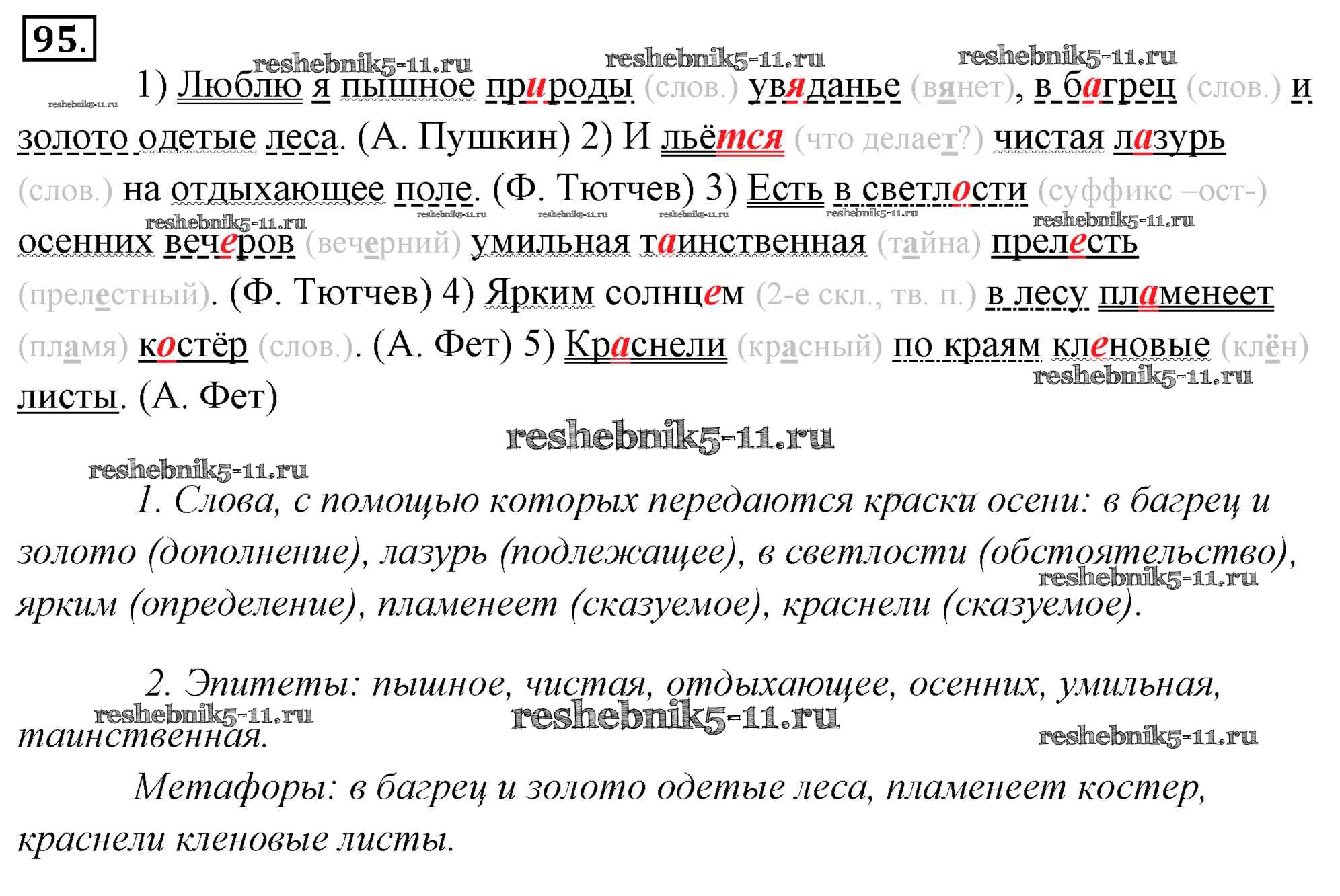 Готовая домашняя работа с ответами по Русскому языку за 6 класс Львова, Львов Учебник Часть 1, 2 Мнемозина 2013 ФГОС - Упражнения 95