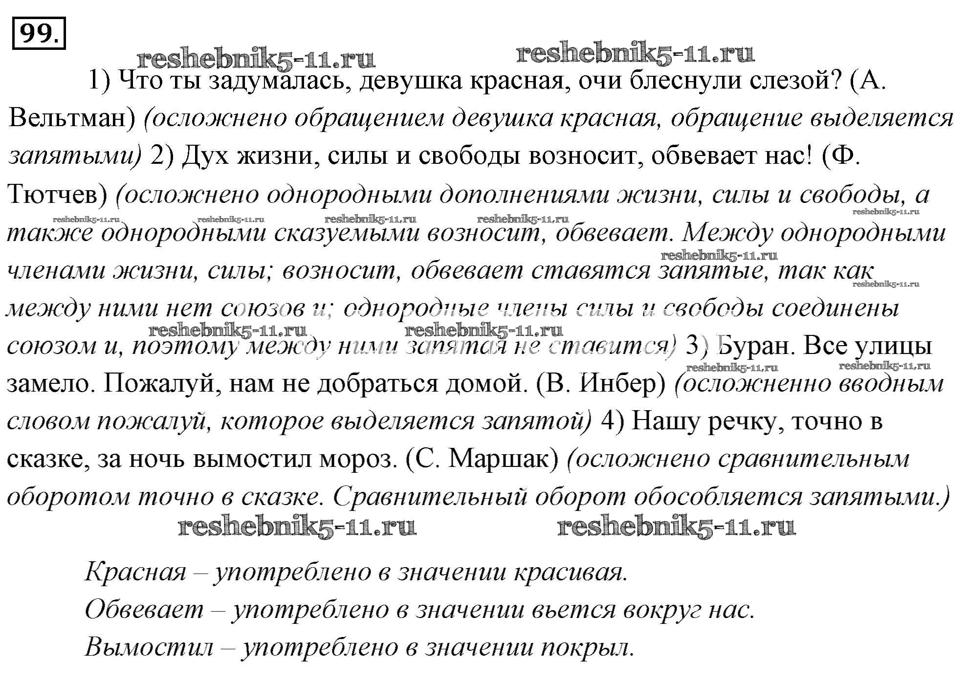 Готовая домашняя работа с ответами по Русскому языку за 6 класс Львова, Львов Учебник Часть 1, 2 Мнемозина 2013 ФГОС - Упражнения 99