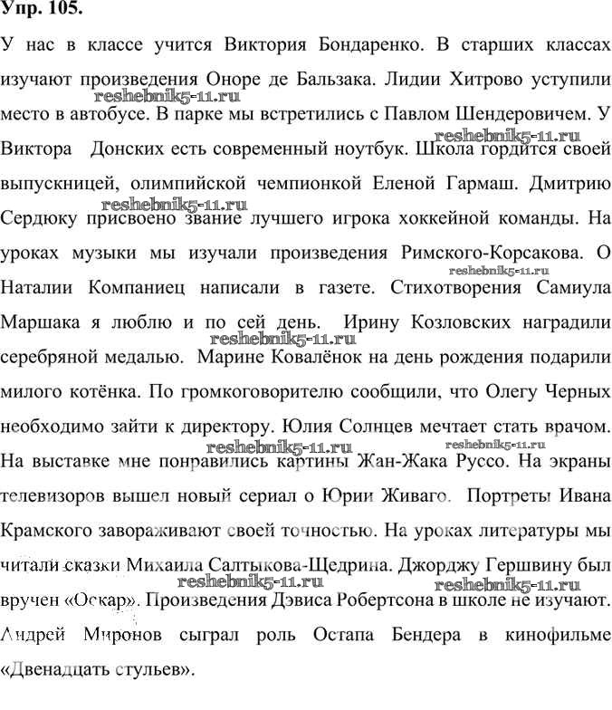Готовая домашняя работа с ответами по Русскому языку за 6 класс Александрова, Загоровская, Богданов Учебник Просвещение 2020 ФГОС - Упражнения 105