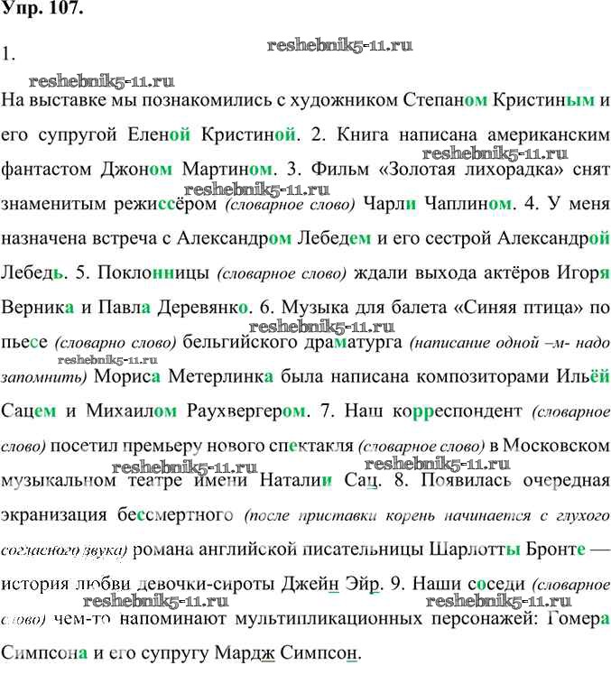 Готовая домашняя работа с ответами по Русскому языку за 6 класс Александрова, Загоровская, Богданов Учебник Просвещение 2020 ФГОС - Упражнения 107