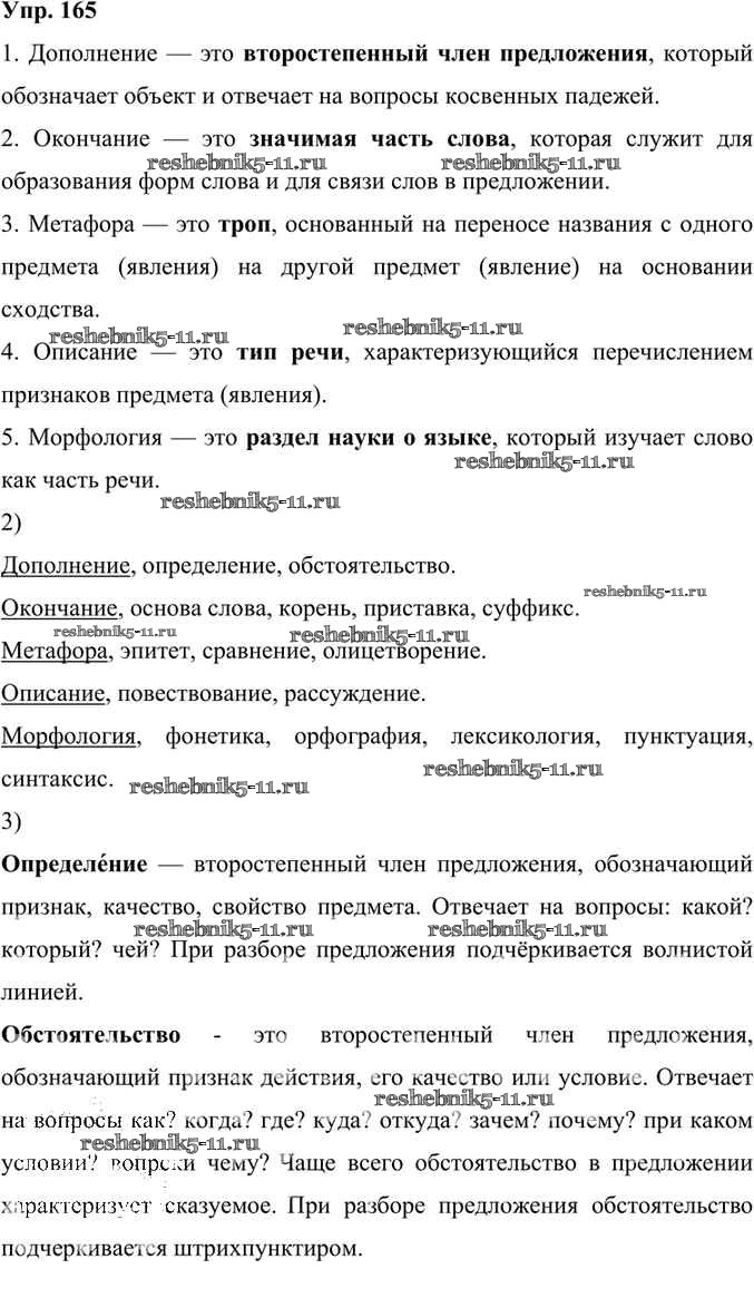 Готовая домашняя работа с ответами по Русскому языку за 6 класс Александрова, Загоровская, Богданов Учебник Просвещение 2020 ФГОС - Упражнения 165