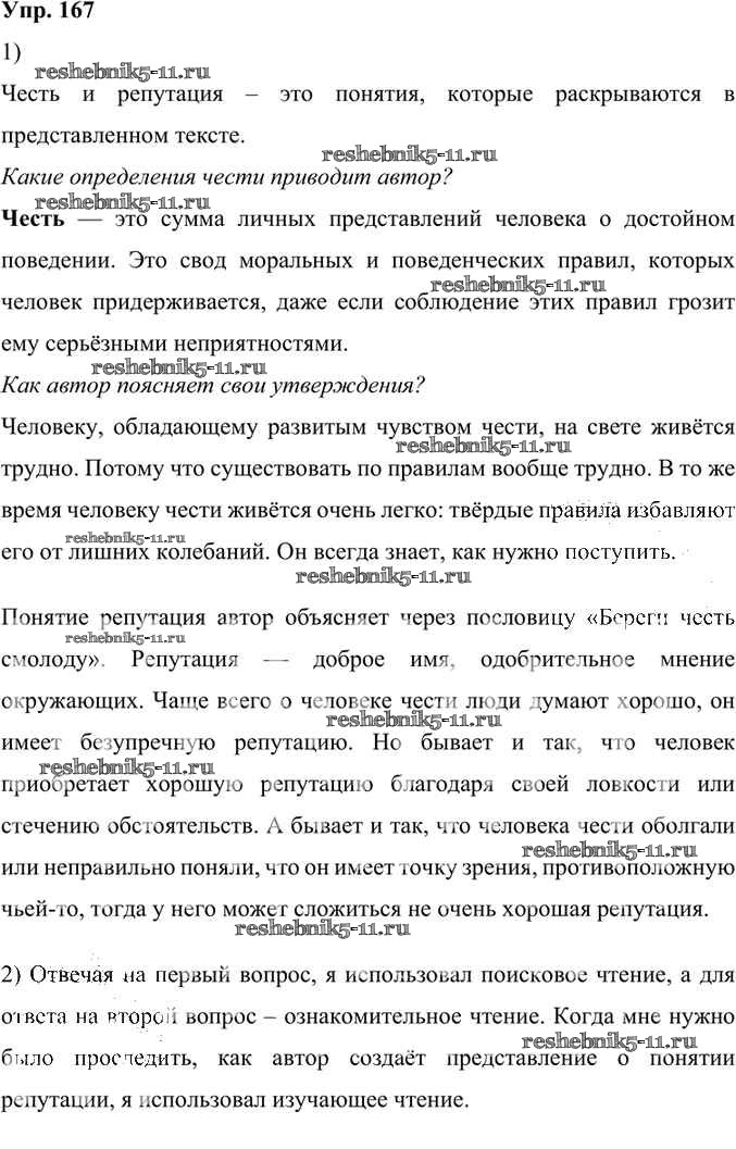 Готовая домашняя работа с ответами по Русскому языку за 6 класс Александрова, Загоровская, Богданов Учебник Просвещение 2020 ФГОС - Упражнения 167