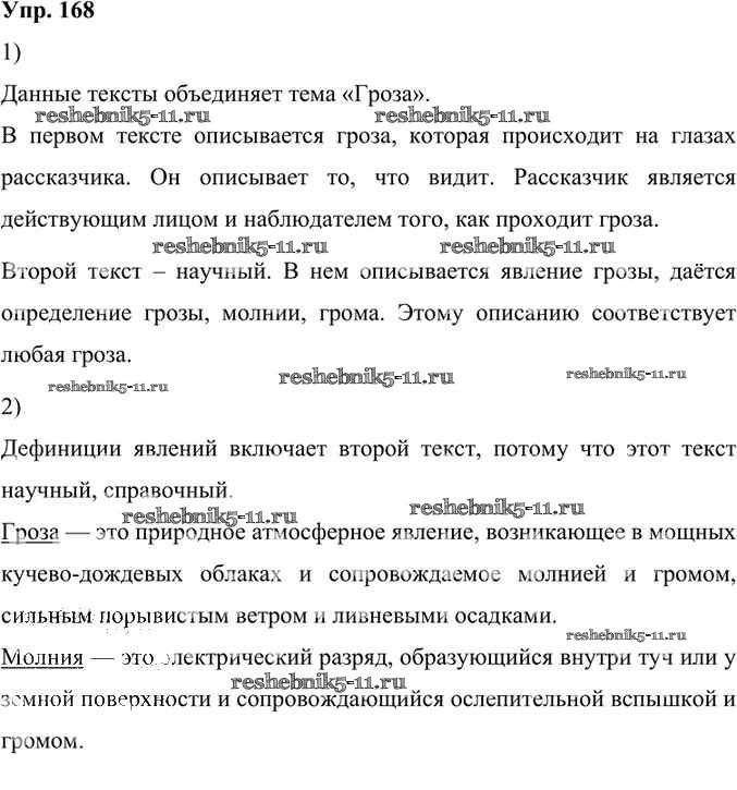 Готовая домашняя работа с ответами по Русскому языку за 6 класс Александрова, Загоровская, Богданов Учебник Просвещение 2020 ФГОС - Упражнения 168