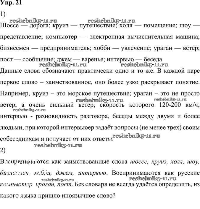 Готовая домашняя работа с ответами по Русскому языку за 6 класс Александрова, Загоровская, Богданов Учебник Просвещение 2020 ФГОС - Упражнения 21