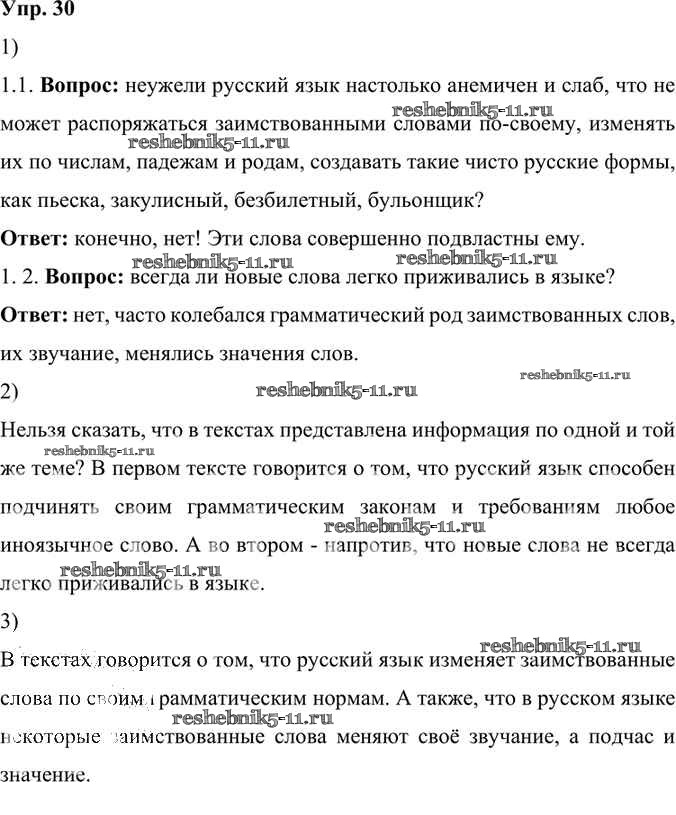 Готовая домашняя работа с ответами по Русскому языку за 6 класс Александрова, Загоровская, Богданов Учебник Просвещение 2020 ФГОС - Упражнения 30