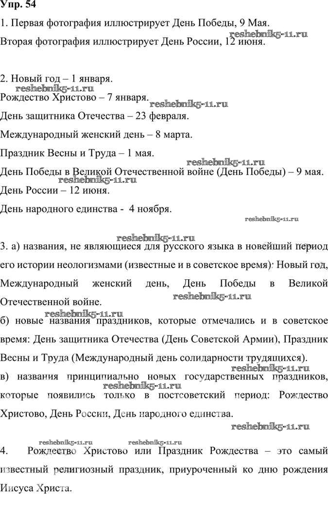 Готовая домашняя работа с ответами по Русскому языку за 6 класс Александрова, Загоровская, Богданов Учебник Просвещение 2020 ФГОС - Упражнения 54