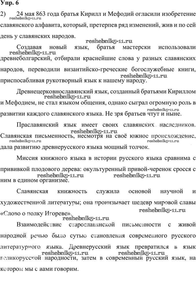 Русский язык за 6 класс Александрова Учебник Просвещение упражнение 6