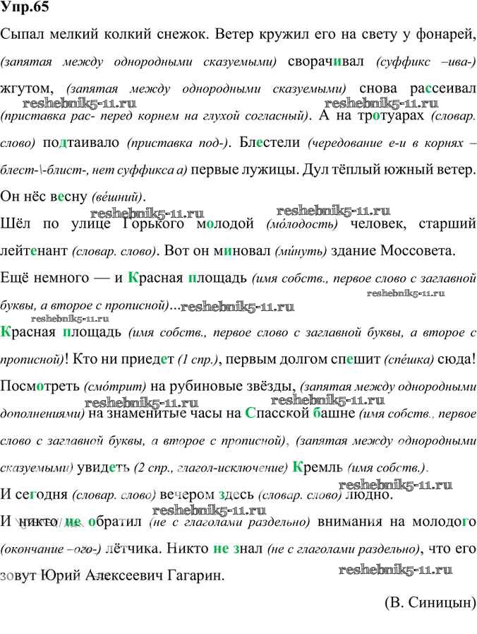 Готовая домашняя работа с ответами по Русскому языку за 6 класс Александрова, Загоровская, Богданов Учебник Просвещение 2020 ФГОС - Упражнения 65