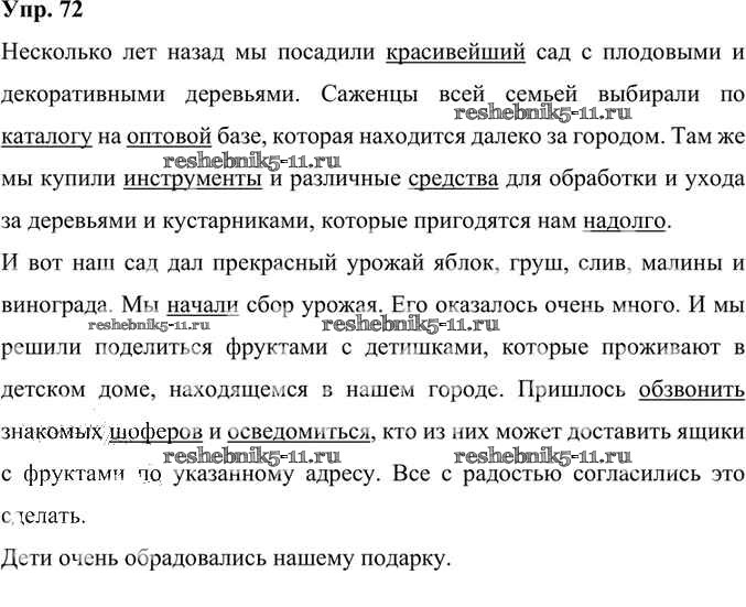 Готовая домашняя работа с ответами по Русскому языку за 6 класс Александрова, Загоровская, Богданов Учебник Просвещение 2020 ФГОС - Упражнения 72