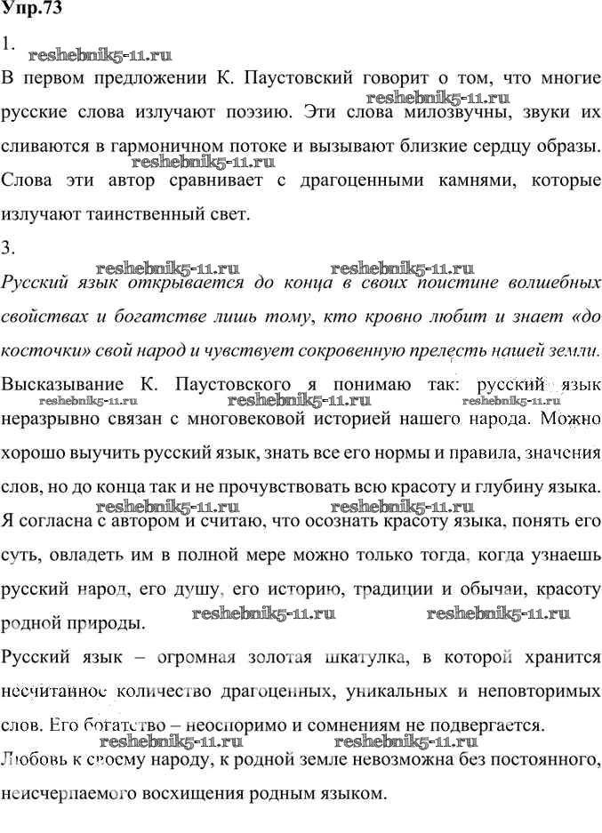 Готовая домашняя работа с ответами по Русскому языку за 6 класс Александрова, Загоровская, Богданов Учебник Просвещение 2020 ФГОС - Упражнения 73