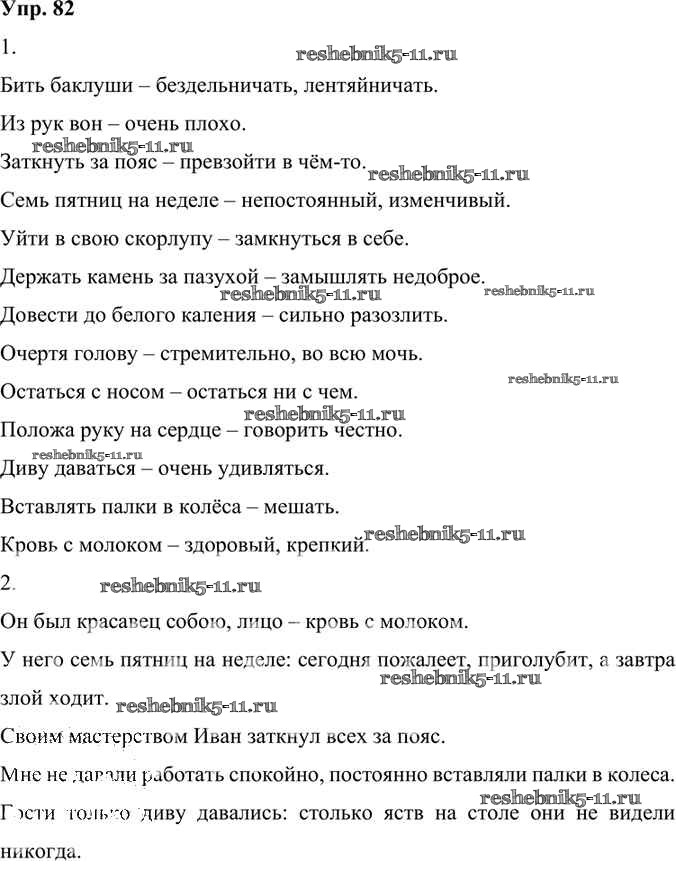 Готовая домашняя работа с ответами по Русскому языку за 6 класс Александрова, Загоровская, Богданов Учебник Просвещение 2020 ФГОС - Упражнения 82