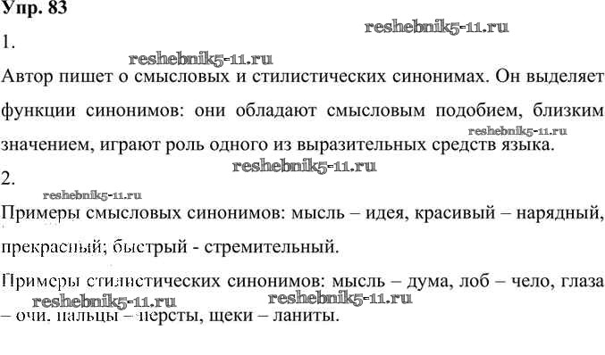 Готовая домашняя работа с ответами по Русскому языку за 6 класс Александрова, Загоровская, Богданов Учебник Просвещение 2020 ФГОС - Упражнения 83