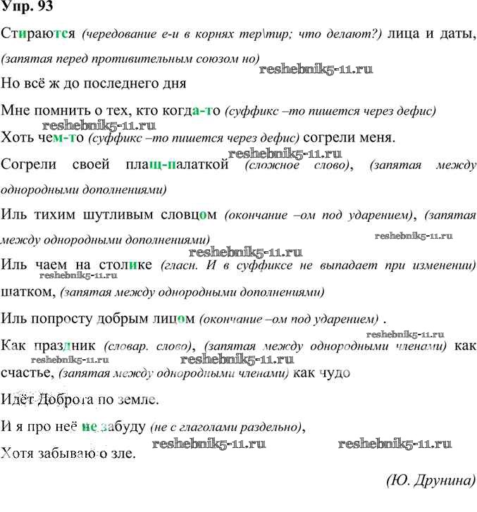 Готовая домашняя работа с ответами по Русскому языку за 6 класс Александрова, Загоровская, Богданов Учебник Просвещение 2020 ФГОС - Упражнения 93
