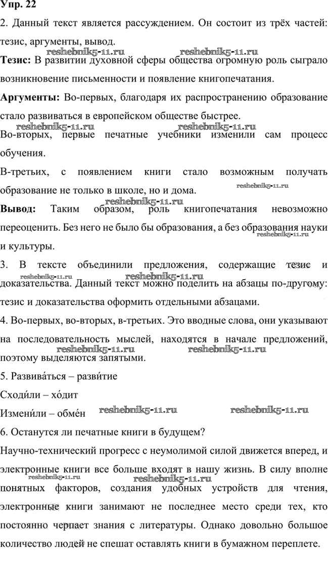 Русский язык за 6 класс Быстрова Учебник Инновационная школа Русское слово упражнение 22