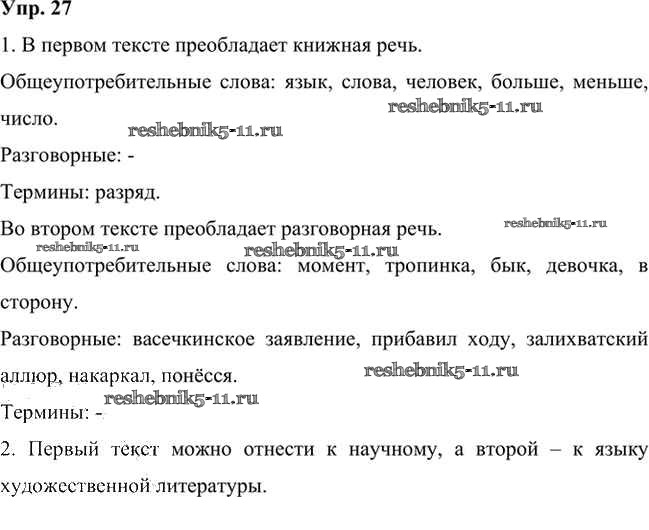 Русский язык за 6 класс Быстрова Учебник Инновационная школа Русское слово упражнение 27
