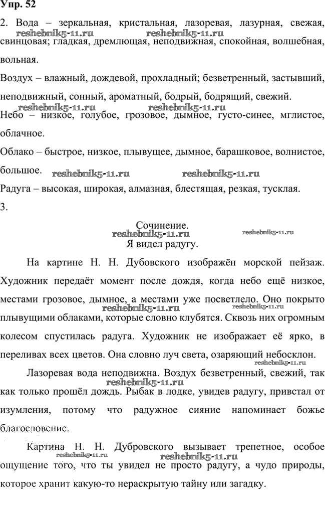 Готовая домашняя работа с ответами по Русскому языку за 6 класс Быстрова, Кибирева, Гостева Учебник Инновационная школа Часть 1, 2 Русское слово 2016 ФГОС - Упражнения 52