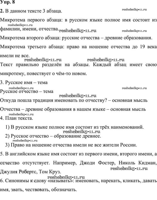 Русский язык за 6 класс Быстрова Учебник Инновационная школа Русское слово упражнение 8