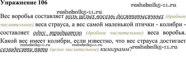 Готовая домашняя работа с ответами по Русскому языку за 6 класс Быстрова, Кибирева, Гостева Учебник Инновационная школа Часть 1, 2 Русское слово 2016 ФГОС - Упражнения 106