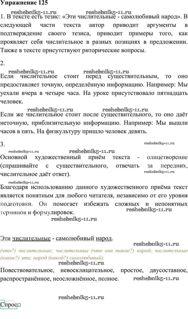 Готовая домашняя работа с ответами по Русскому языку за 6 класс Быстрова, Кибирева, Гостева Учебник Инновационная школа Часть 1, 2 Русское слово 2016 ФГОС - Упражнения 125
