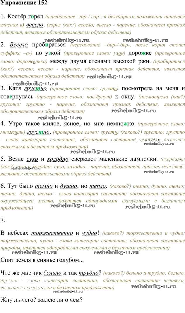 Готовая домашняя работа с ответами по Русскому языку за 6 класс Быстрова, Кибирева, Гостева Учебник Инновационная школа Часть 1, 2 Русское слово 2016 ФГОС - Упражнения 152