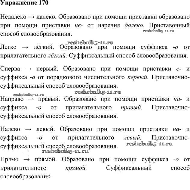 Готовая домашняя работа с ответами по Русскому языку за 6 класс Быстрова, Кибирева, Гостева Учебник Инновационная школа Часть 1, 2 Русское слово 2016 ФГОС - Упражнения 170