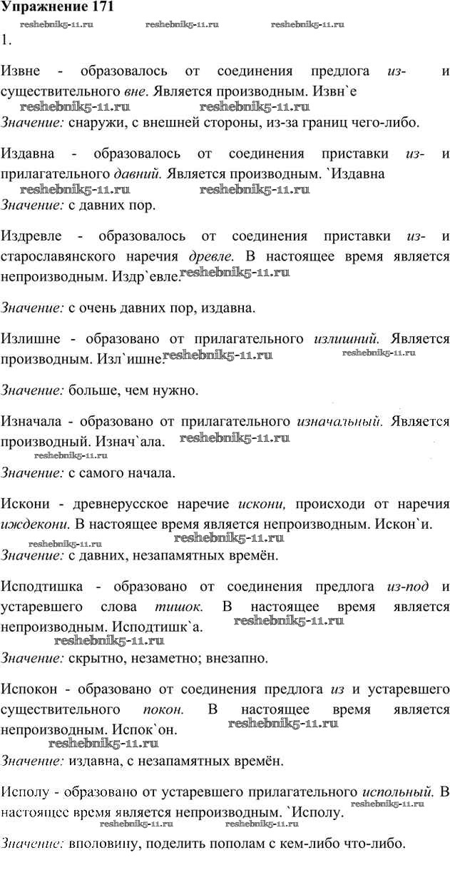 Готовая домашняя работа с ответами по Русскому языку за 6 класс Быстрова, Кибирева, Гостева Учебник Инновационная школа Часть 1, 2 Русское слово 2016 ФГОС - Упражнения 171
