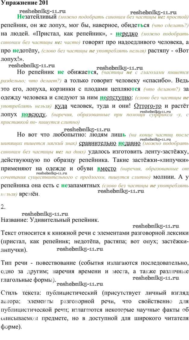 Готовая домашняя работа с ответами по Русскому языку за 6 класс Быстрова, Кибирева, Гостева Учебник Инновационная школа Часть 1, 2 Русское слово 2016 ФГОС - Упражнения 201