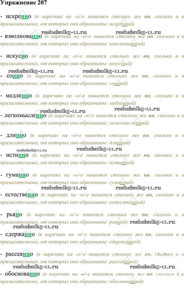 Готовая домашняя работа с ответами по Русскому языку за 6 класс Быстрова, Кибирева, Гостева Учебник Инновационная школа Часть 1, 2 Русское слово 2016 ФГОС - Упражнения 207