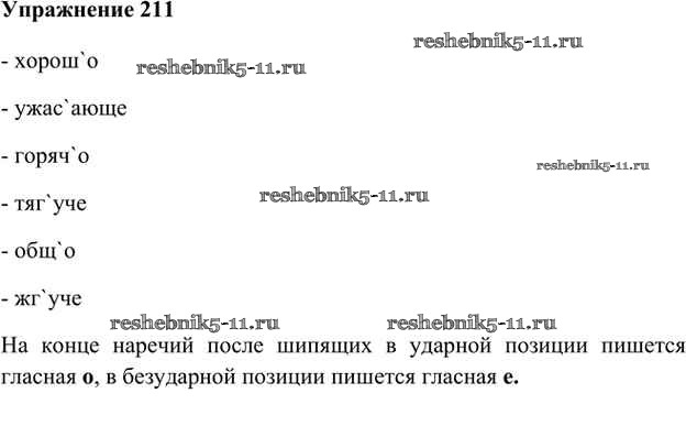 Готовая домашняя работа с ответами по Русскому языку за 6 класс Быстрова, Кибирева, Гостева Учебник Инновационная школа Часть 1, 2 Русское слово 2016 ФГОС - Упражнения 211
